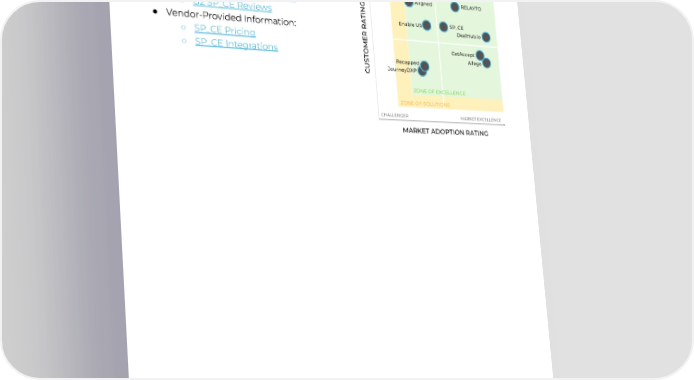SP_CE-Leader ● Reviews: ○ CapterraSP_CEReviews ○ G2SP_CEReviews ● Vendor-ProvidedInformation: ○ SP_CEPricing ○ SP_CEIntegrations